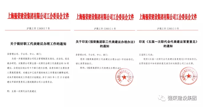 据了解,按照董事长关于公司工会建设的总体思路方向,集团公司总裁办及时召开了办公会,在听取当前工会工作情况汇报基础上,专题研究了当前和今后一个时期的工会工作,并就如何做好职工代表建议工作,对公司各级各部门提出了明确规定。要求公司工会从推进职代会代表建议制度建设、加强职工参与民主管理能力、实现职工与企业双赢等方面出发,制定出台《强荣集团职工代表建议办理办法》,发出《关于做好职代会代表建议办理工作的通知》,对五届一次职代会代表提出的意见,归纳整理15条代表建议,分送到集团公司9个部门进行办理。要求公司行政部采取发送征求意见表、开座谈会等方式,对各部门办理情况进行督办,将答复意见和办理结果及时通报给每个职工代表。